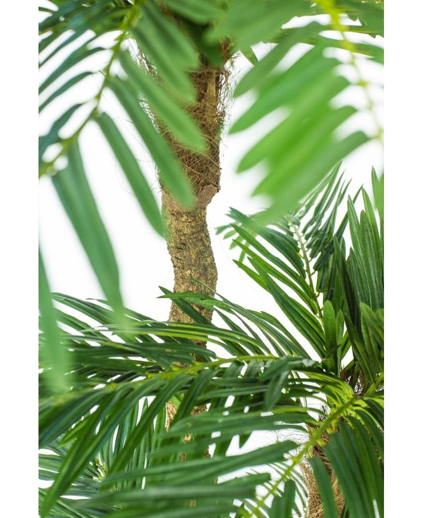 Skab en eksotisk atmosfære i dit hjem eller kontor med vores imponerende Cycas kunstige palme. Dette elegante palmetræ er designet til at bringe naturens skønhed indenfor, uden den vedligeholdelse, der kræves af ægte planter.