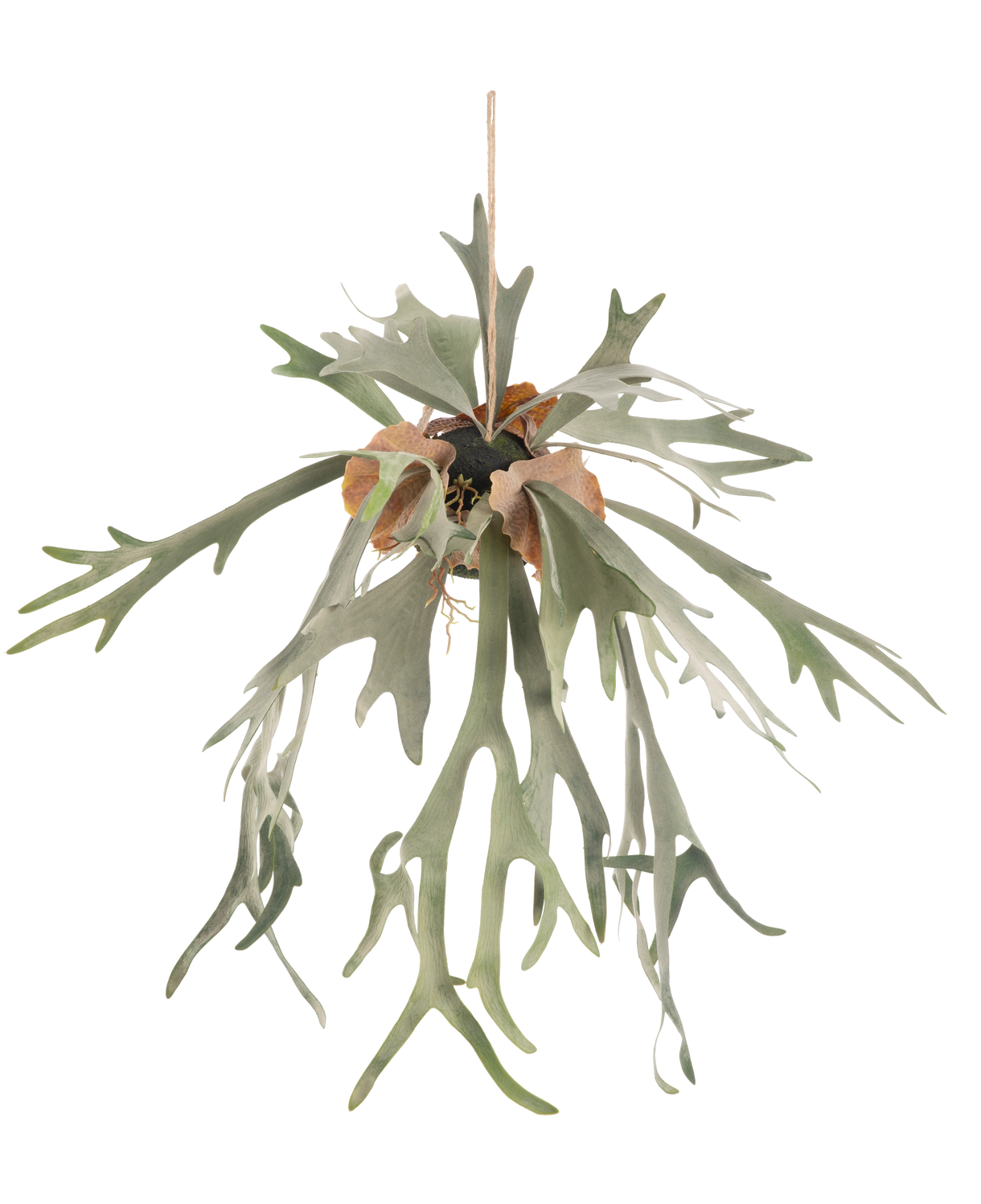 Oplev den perfekte kombination af naturens skønhed og moderne design med vores kunstige hængeplante Staghorn på kugle. Denne imponerende plante tilføjer et unikt og stilfuldt præg til dit hjem eller kontor, uden at kræve den pleje, der følger med ægte planter.