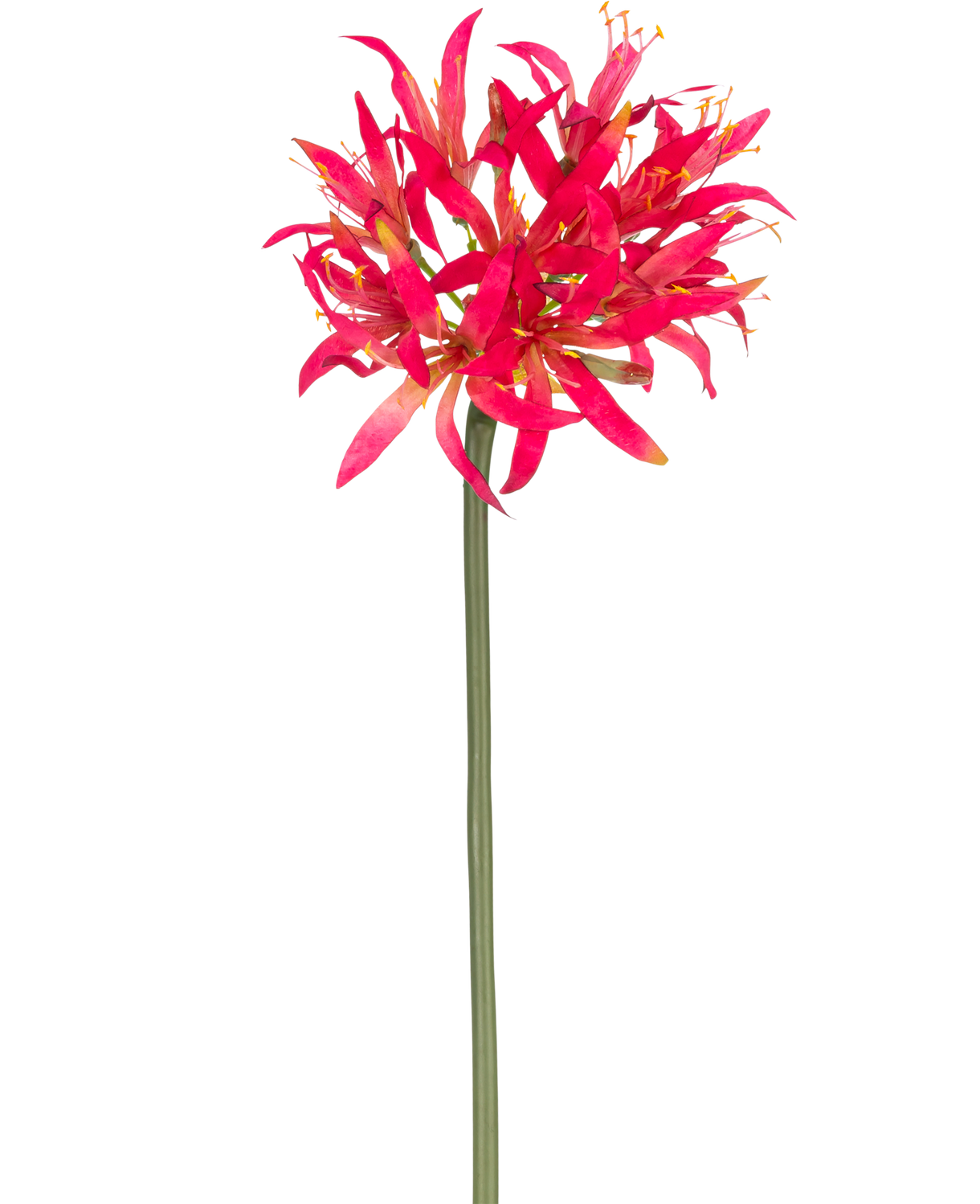 Det er slet ikke svært at sammensætte en buket med kunstige blomster. Tag et kig på vores side med mere end 400 forskellige slags kunstige blomster, og vælg dine favoritter. Når de bliver leveret, sætter du dem sammen i en vase, og voila, du har en smuk buket blomster i dit hjem, som aldrig vil visne! Denne Nerine-blomst i en munter farve vil give enhver buket liv og gøre dit hjem endnu mere muntert!