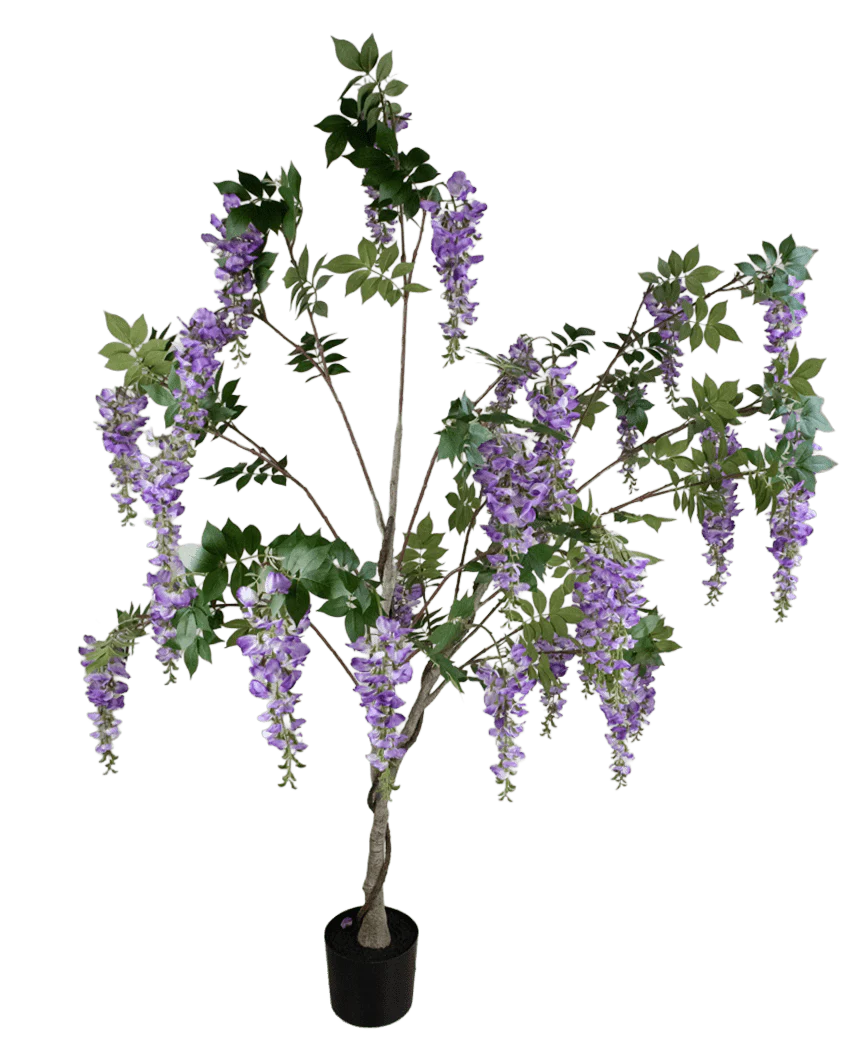 De naturtro, lilla-blå blomsterklaser hænger yndefuldt ned, som om de lige er begyndt at blomstre. Kræver hverken vanding eller beskæring - men er et flot blikfang hele året rundt.