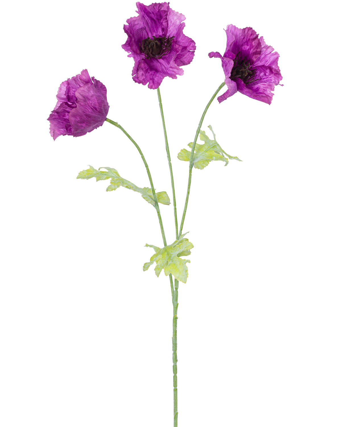 Forvandl dit hjem med den smukke kunstige valmue i en betagende lilla nuance. Denne 73 cm lange blomst bringer liv og farve ind i ethvert rum, uden at kræve den pleje, som levende planter gør.