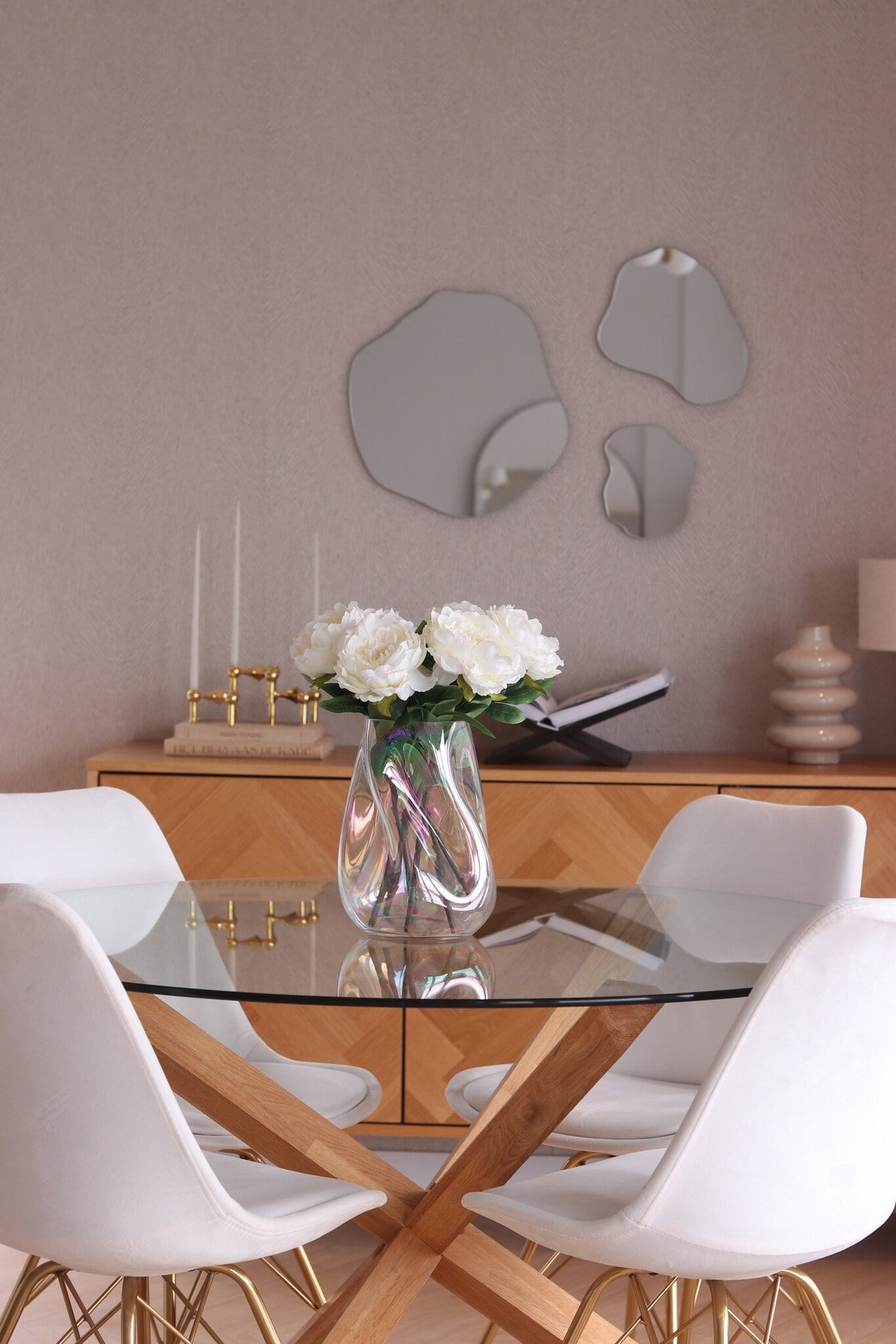 Tilføj en tidløs elegance til dit hjem med vores kunstige buket af hvide pæoner. Denne smukke buket er perfekt til at skabe en atmosfære af ro og skønhed, uanset hvor du placerer den.