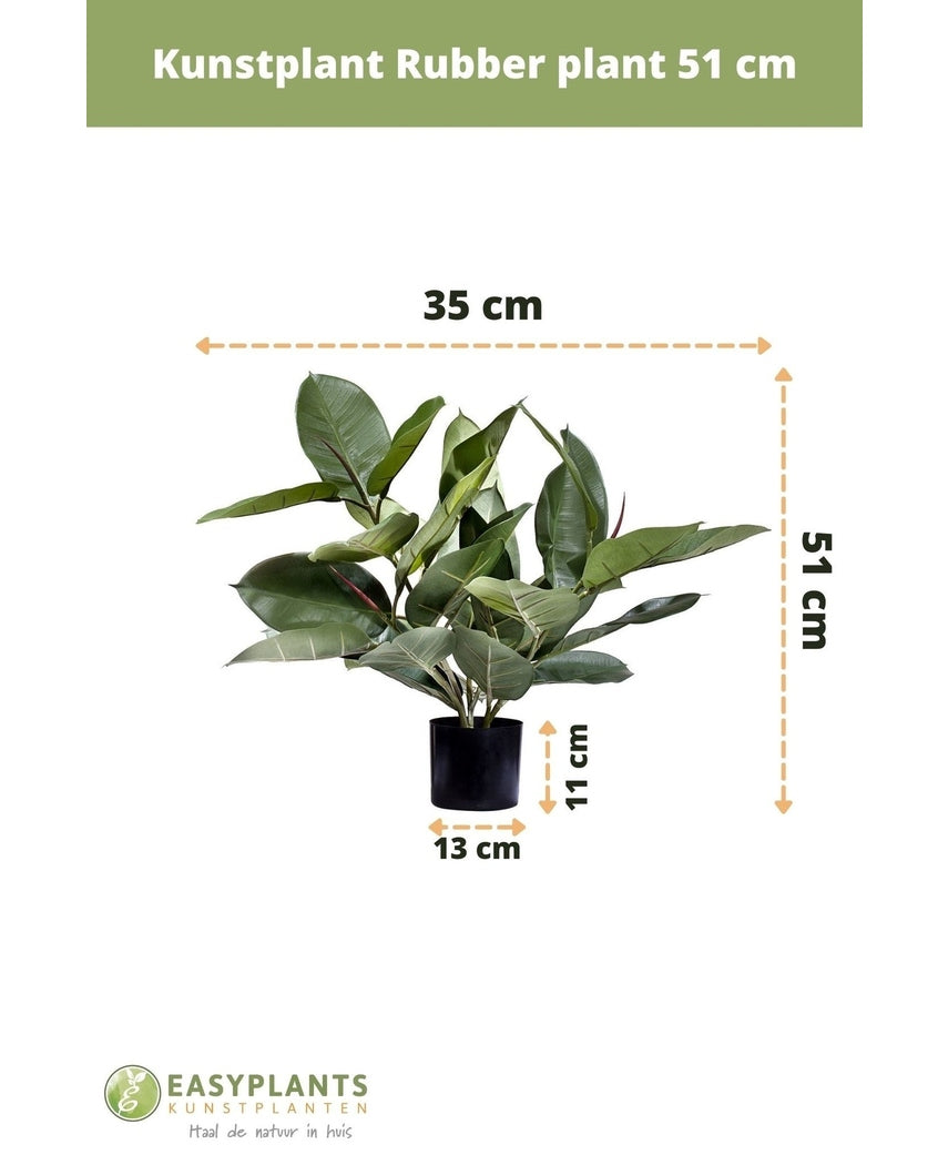 Giv dit hjem liv med vores kunstig gummiplante, der stråler af elegance og naturlig skønhed. Denne 51 cm høje plante er perfekt til at tilføje et friskt pust til dit interiør, uanset hvor du placerer den.