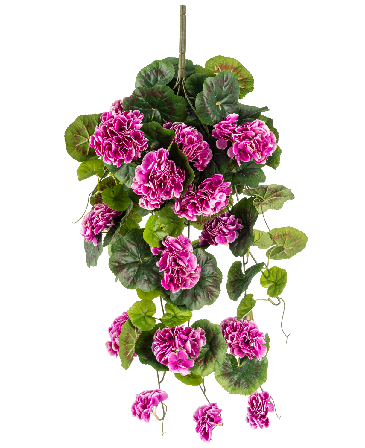 Forvandl dit rum med den smukke kunstige hængeplante geranium i en elegant lilla nuance. Denne spektakulære plante er designet til at tilføje liv og farve til enhver indretning uden behov for vedligeholdelse.