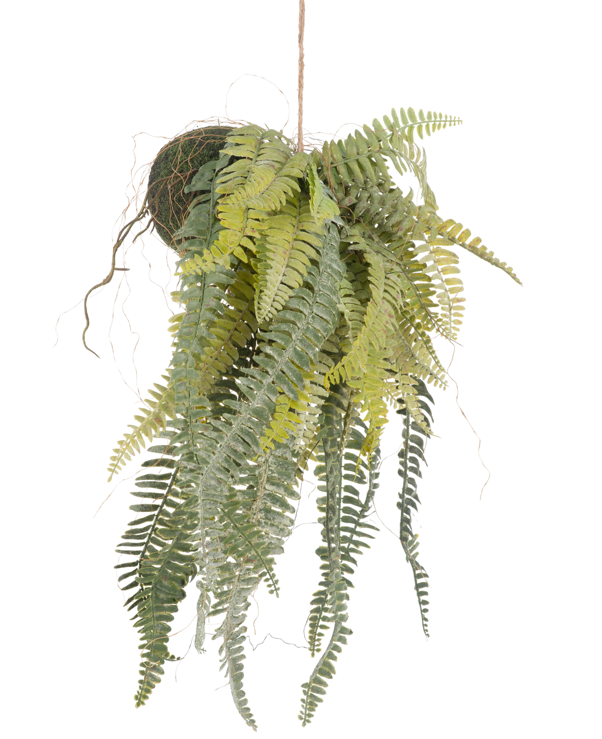 Kunstig hængeplante Frosted Fern på kugle – 97 cm