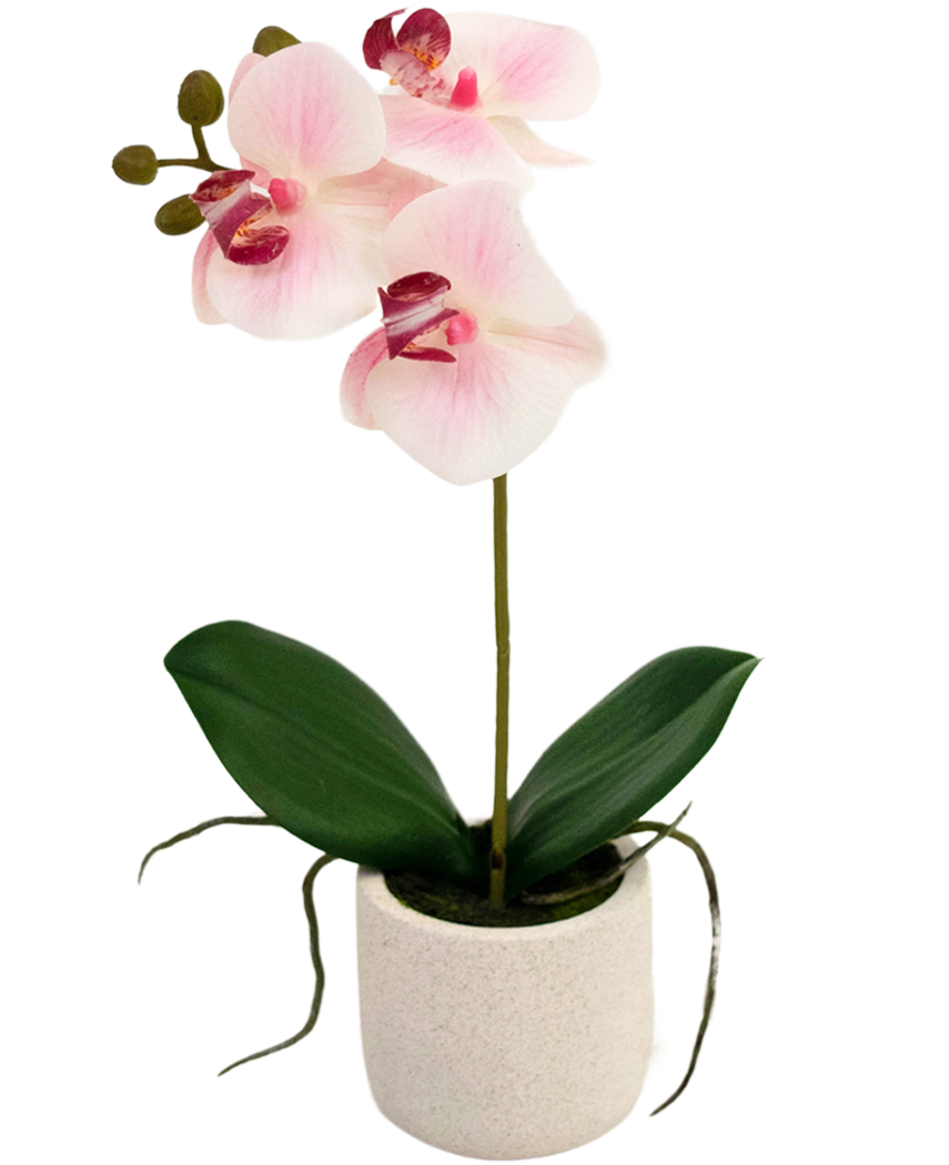 Forkæl dit hjem med skønheden af vores kunstige orkidé, der måler 30 cm i en elegant kombination af rosa og hvid. Denne plante er designet med Real Touch teknologi, hvilket giver den en utrolig naturlig følelse og udseende, der vil forbløffe enhver gæst.