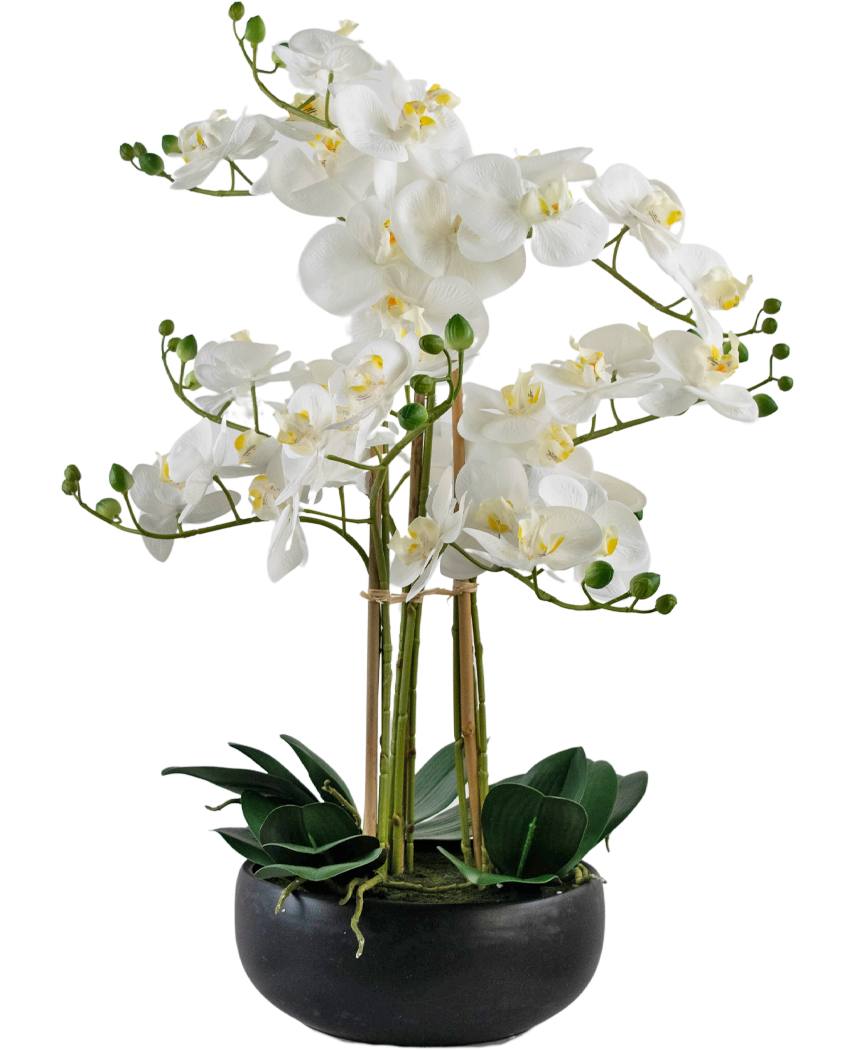 Kunstig orkidé Real Touch 50 cm hvid i sort potte