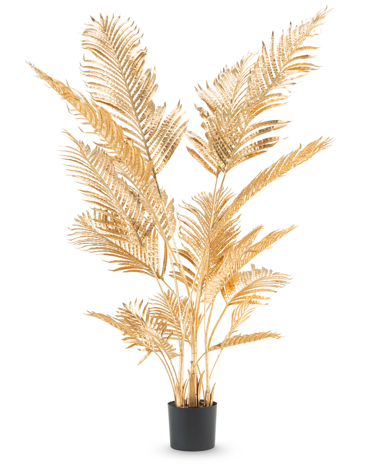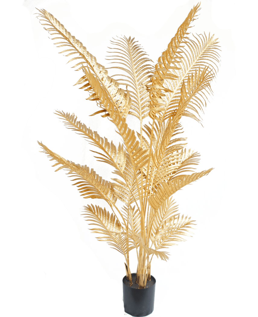 Oplev den perfekte kombination af stil og vedligeholdelsesfri skønhed med vores kunstige Areca palme i guld. Denne imponerende 180 cm høje plante bringer et strejf af tropisk elegance til ethvert rum, uden behov for vanding eller sollys.