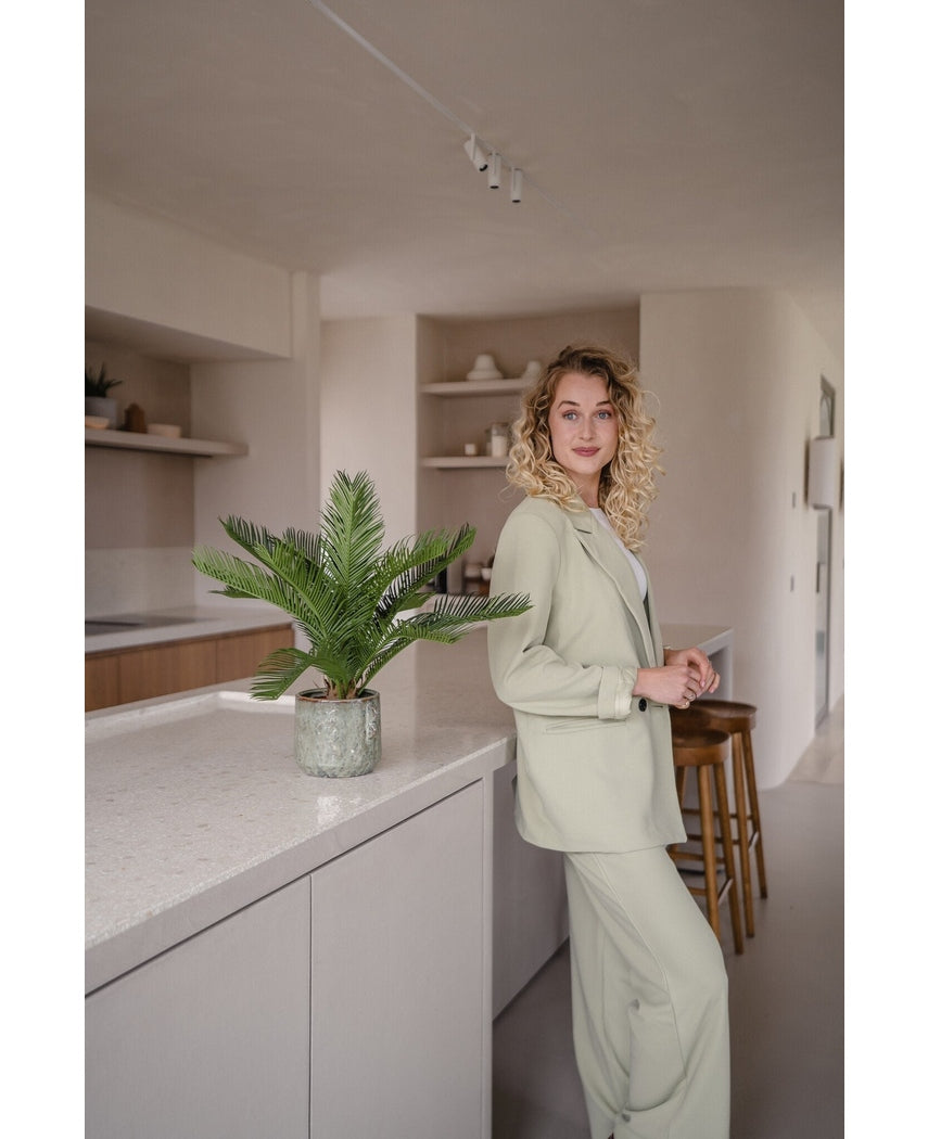 - Vedligeholdelsesfri: Glem alt om vanding, gødning eller beskæring. Denne kunstige palme kræver ingen omsorg, hvilket gør den ideel for dem med travle livsstile.