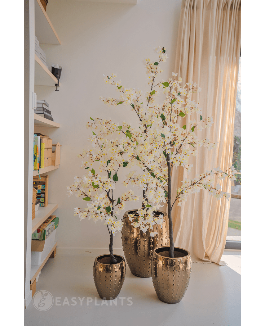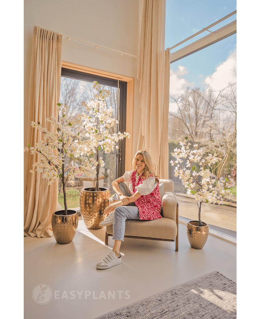 Vores kunstige planter er næsten ikke til at skelne fra den ægte vare. Vi bruger plast af høj kvalitet, som ikke falmer, og stammerne er lavet af ægte træ, hvilket giver dem et meget naturligt udseende. Hvis du stadig er i tvivl om kvaliteten, inviterer vi dig til at besøge vores showroom!