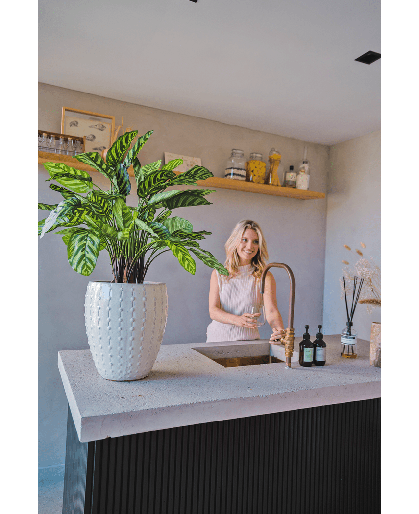 Levetiden for vores kunstige planter er 10 til 15 år. Takket være vores høje kvalitet er planterne usædvanligt holdbare, hvilket gør dem til et ekstremt bæredygtigt valg.