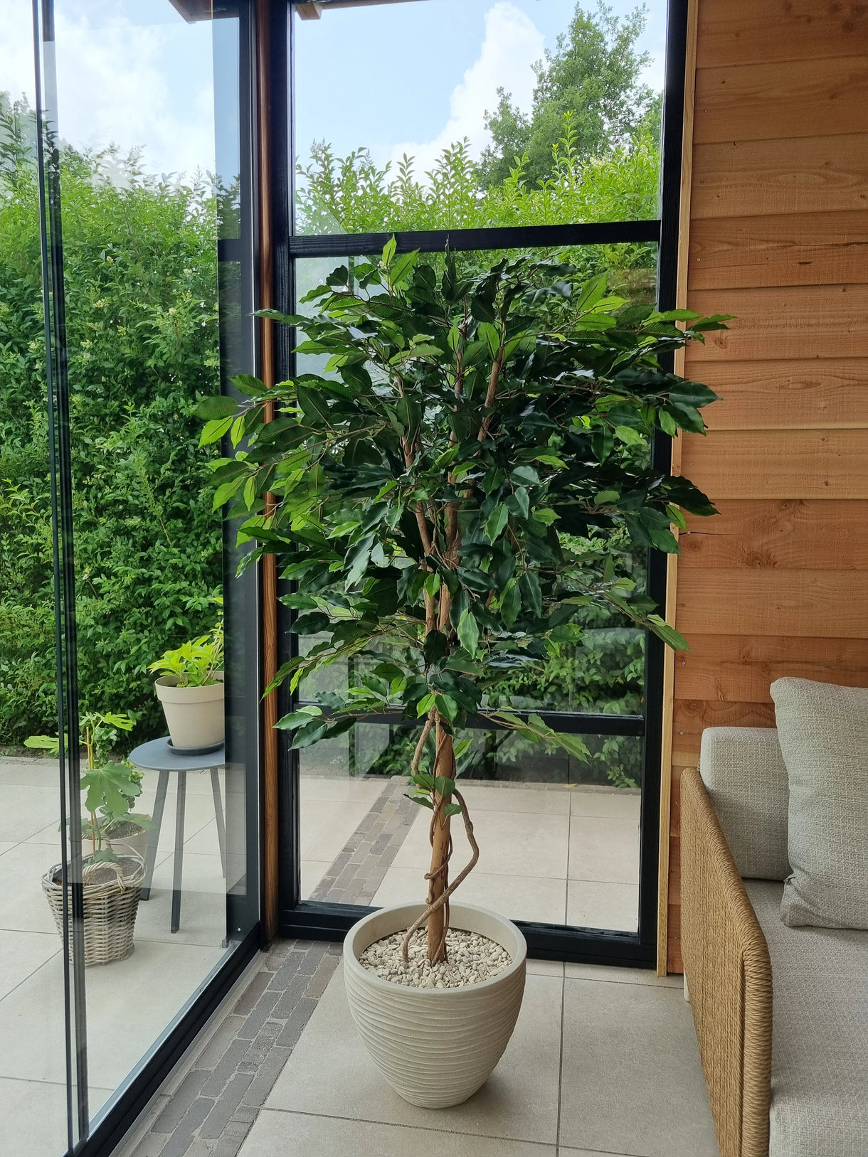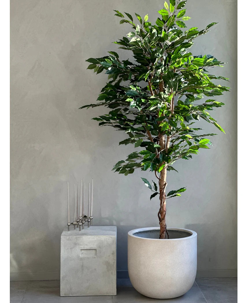 Vores kunstige planter er næsten ikke til at skelne fra den ægte vare. Vi bruger plast af høj kvalitet, som ikke falmer, og stammerne er lavet af ægte træ, hvilket giver dem et meget naturligt udseende. Hvis du stadig er i tvivl om kvaliteten, inviterer vi dig til at besøge vores showroom!