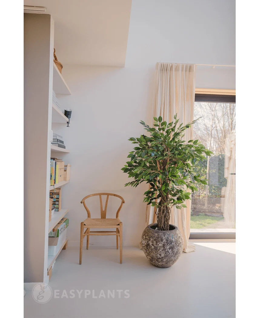 - Stabil Støtte: Bygget på flere rigtige træstammer, sikrer denne plante stabilitet og en naturlig æstetik.