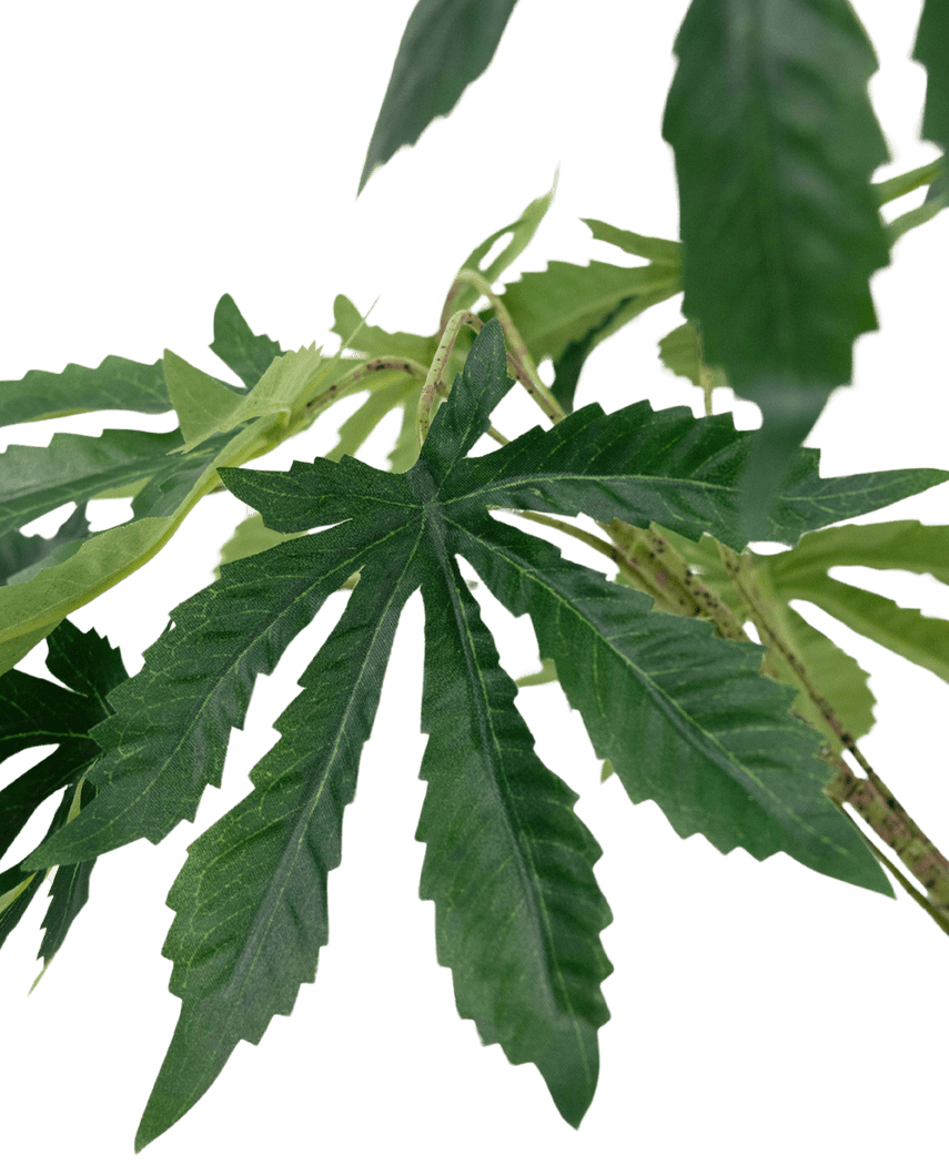 Tilføj et strejf af naturlig skønhed til dit hjem med vores kunstige hamp cannabis blade. Denne 60 cm høje plante er det perfekte valg for dem, der ønsker at bringe naturen indendørs uden besværet ved at pleje en ægte plante.