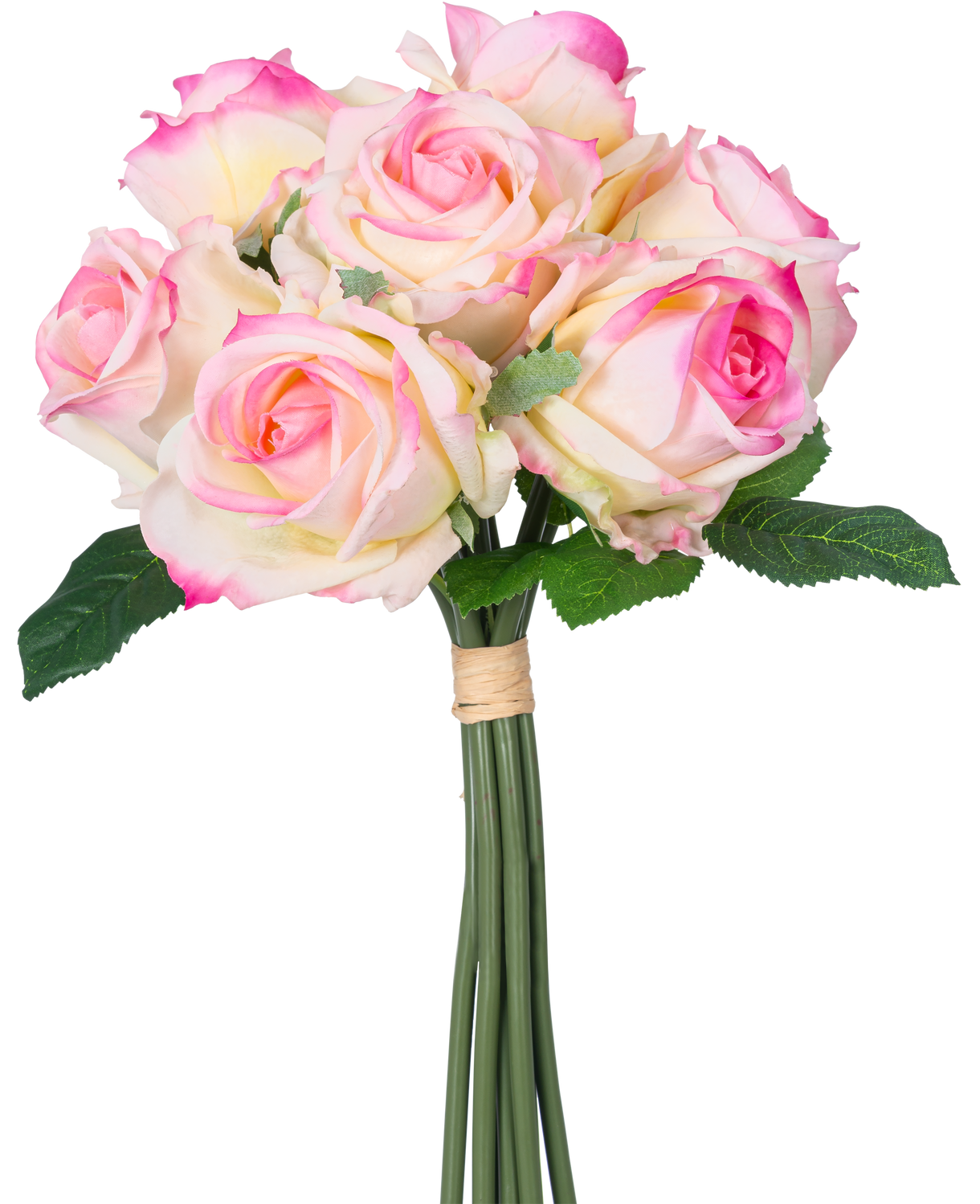 Kunstig rosenbuket 7 roser Real Touch Cream/Pink 30 cm