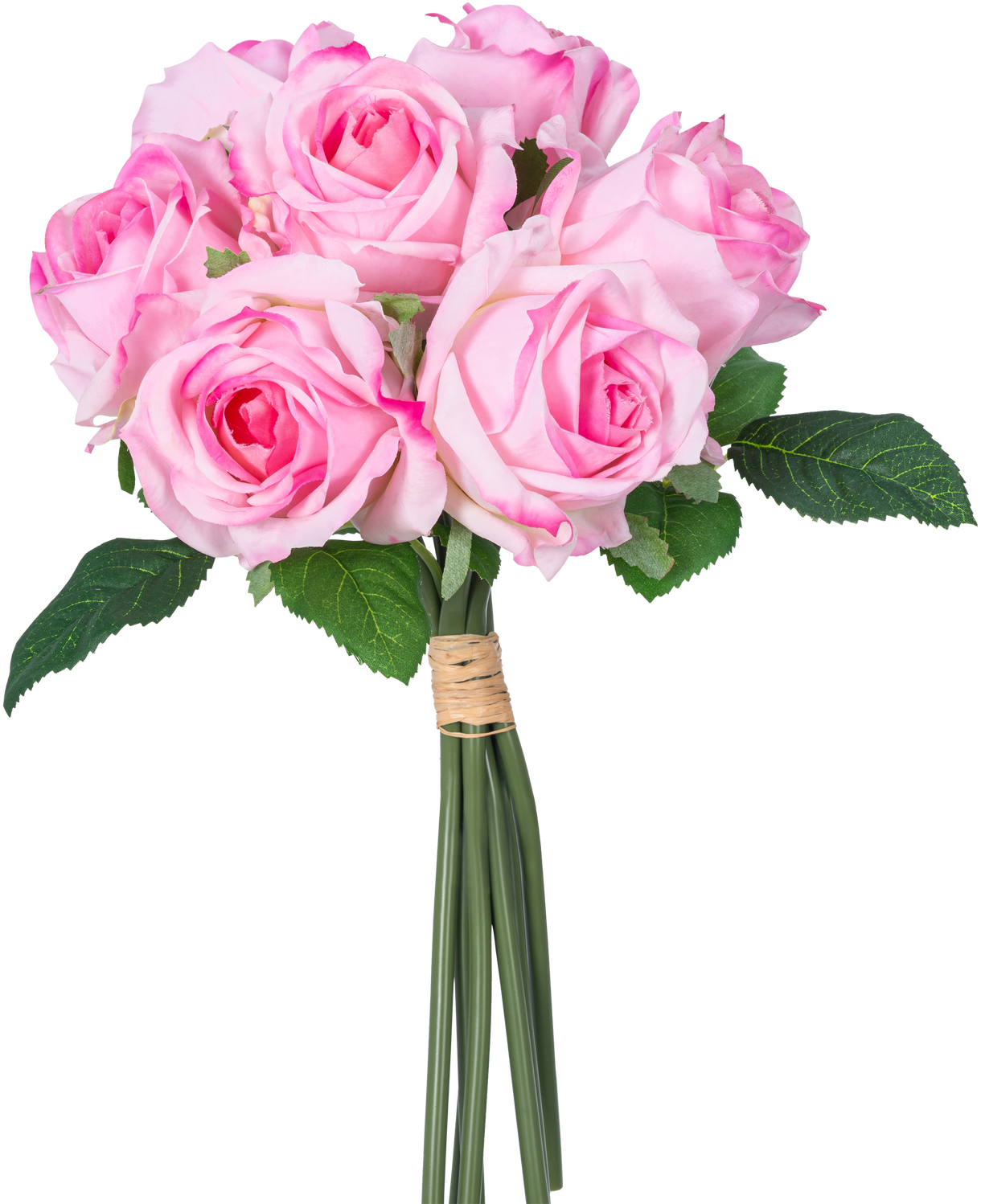 Kunstig rosenbuket 7 roser Real Touch Pink 30 cm